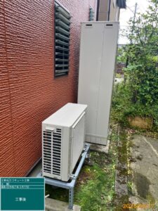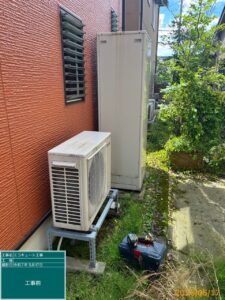 今回はダイキン製エコキュートへの入替工事を実施。既存機器を撤去後、新しいエコキュートを設置し、配管接続・試運転まで行い工事を完了しました。なお、10年保証にもご加入いただいています。