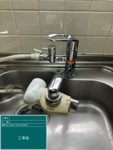 また、台所の蛇口はレバー操作がスムーズな混合水栓を導入。水漏れやハンドルの固さといった従来の不便さを解消し、使い勝手を大幅に向上させました。