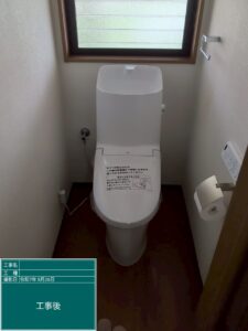 ご依頼内容は、1階と2階のトイレ本体の入れ替え、2階の内装リフォーム、さらに台所蛇口の交換と、住まい全体の設備改善を兼ねた工事です。