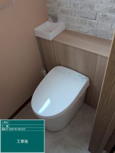 まず、トイレは最新の節水型へ交換。清掃性に優れた機能を備えており、日々のお手入れが簡単になりました。